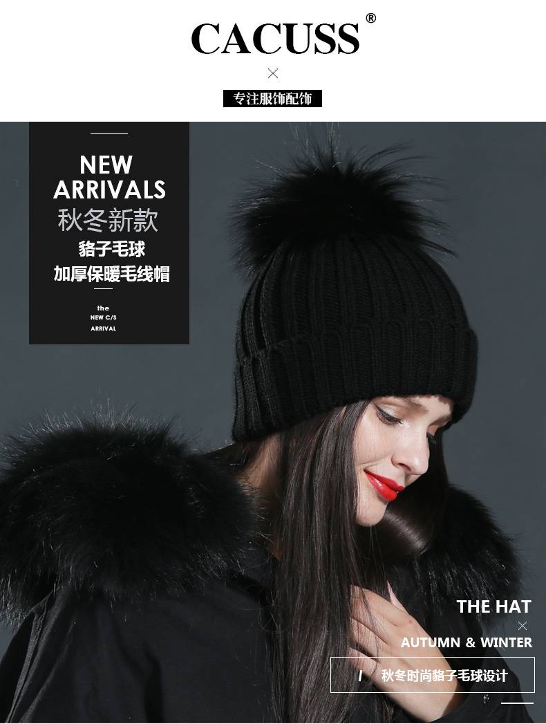 cacuss毛线帽女秋冬季针织帽女貉子毛球休闲韩版时尚保暖毛线帽潮