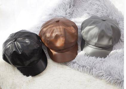 pu皮质八角帽子女秋冬季英伦潮人韩版春天时尚百搭皮帽鸭舌贝雷帽