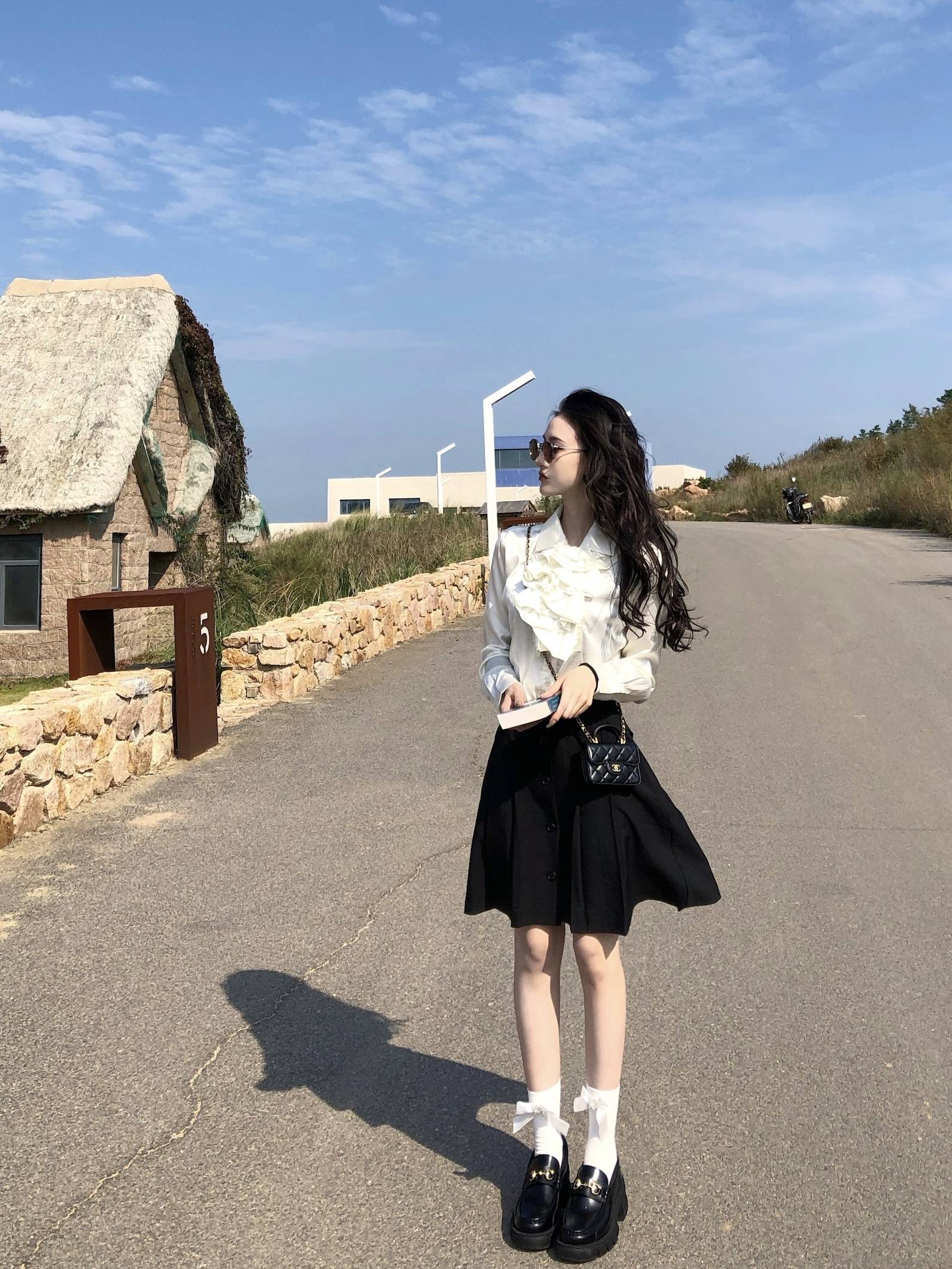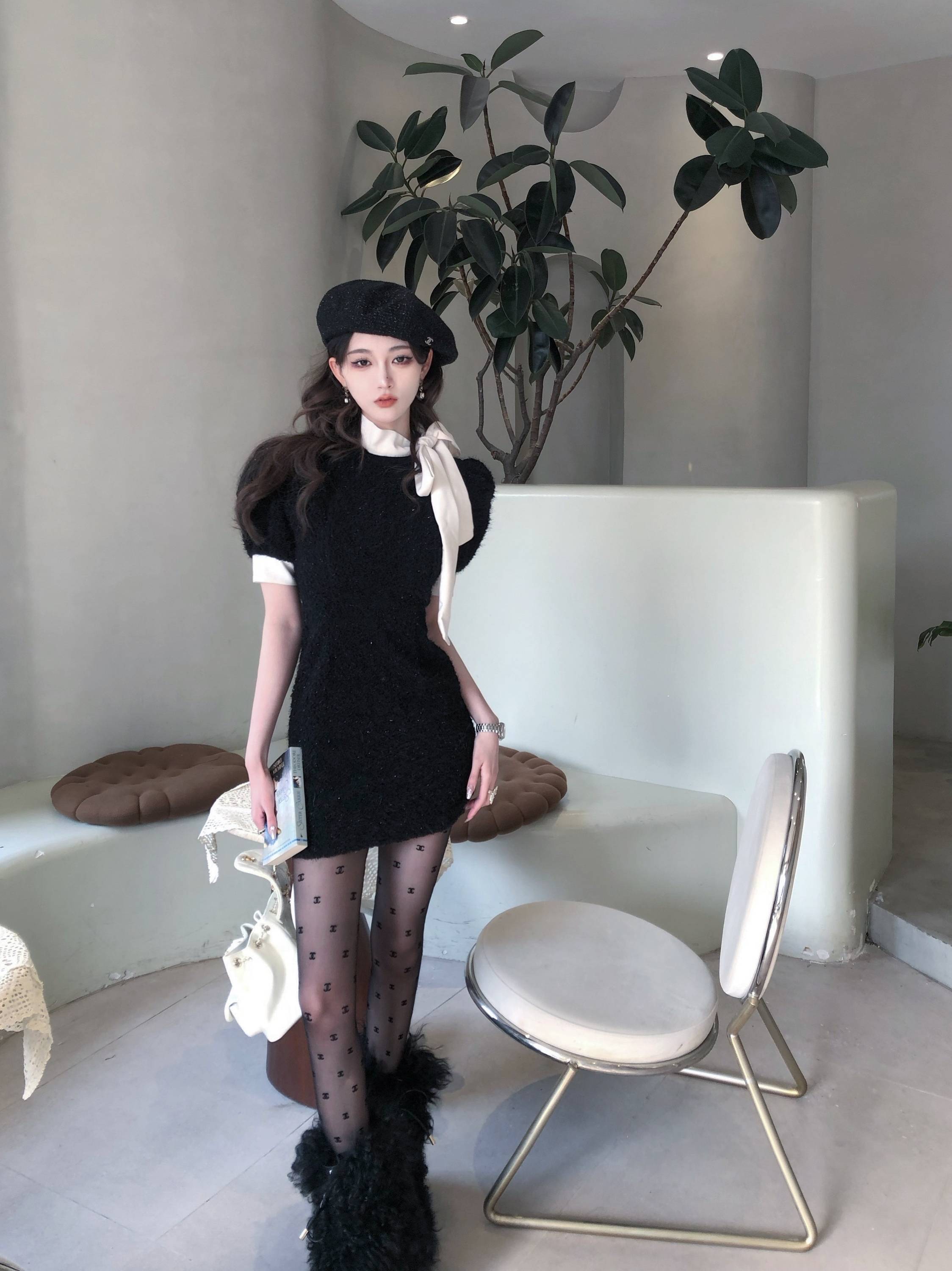 欧货时尚洋气娃娃领连衣裙女2021年夏季新款 气质收腰泡泡袖a字裙
