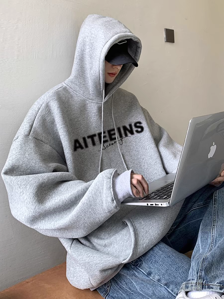 美式重磅加绒灰色连帽卫衣男春秋冬季新款潮牌宽松学生情侣装外套