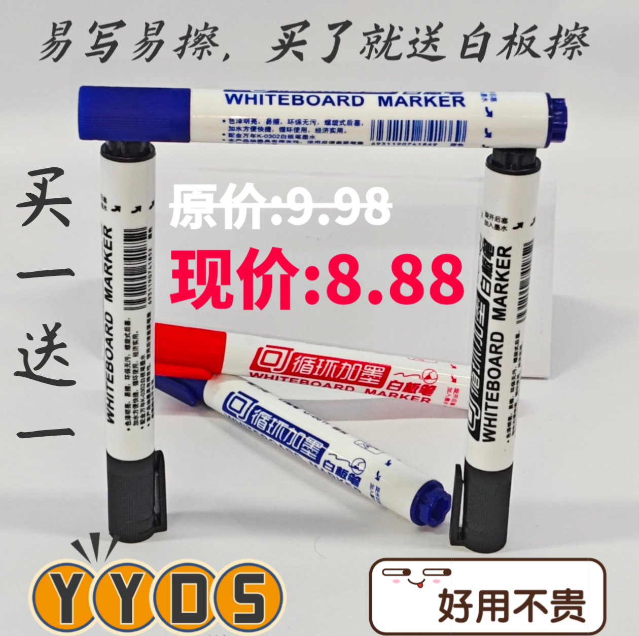 晨光白板笔可擦儿童无毒黑色大容量教师用彩色红蓝黑板笔水性记号笔画板笔白班笔白版笔粗头易擦百板笔包邮
