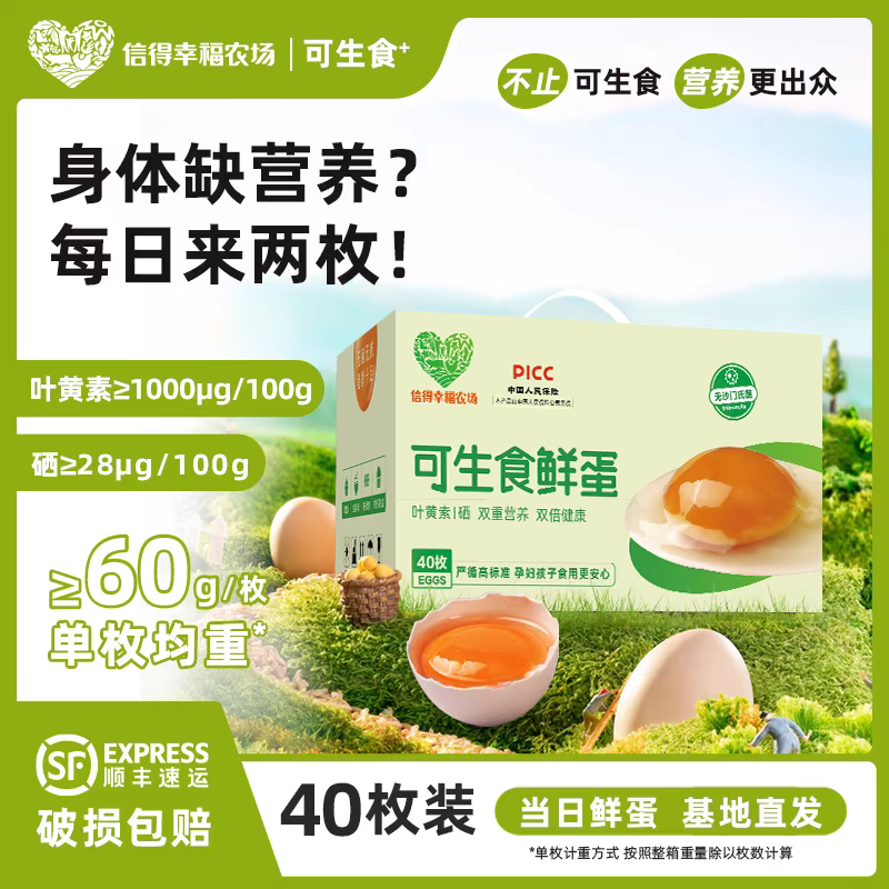 蛋香源可生食鲜鸡蛋均重60g叶黄素无菌可日料溏心富硒无抗顺丰