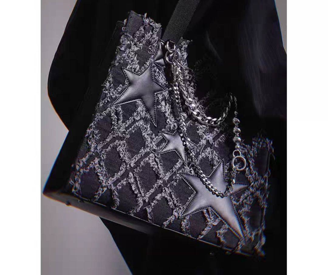 小众原创设计五角星牛仔帆布大容量托特单肩斜挎包