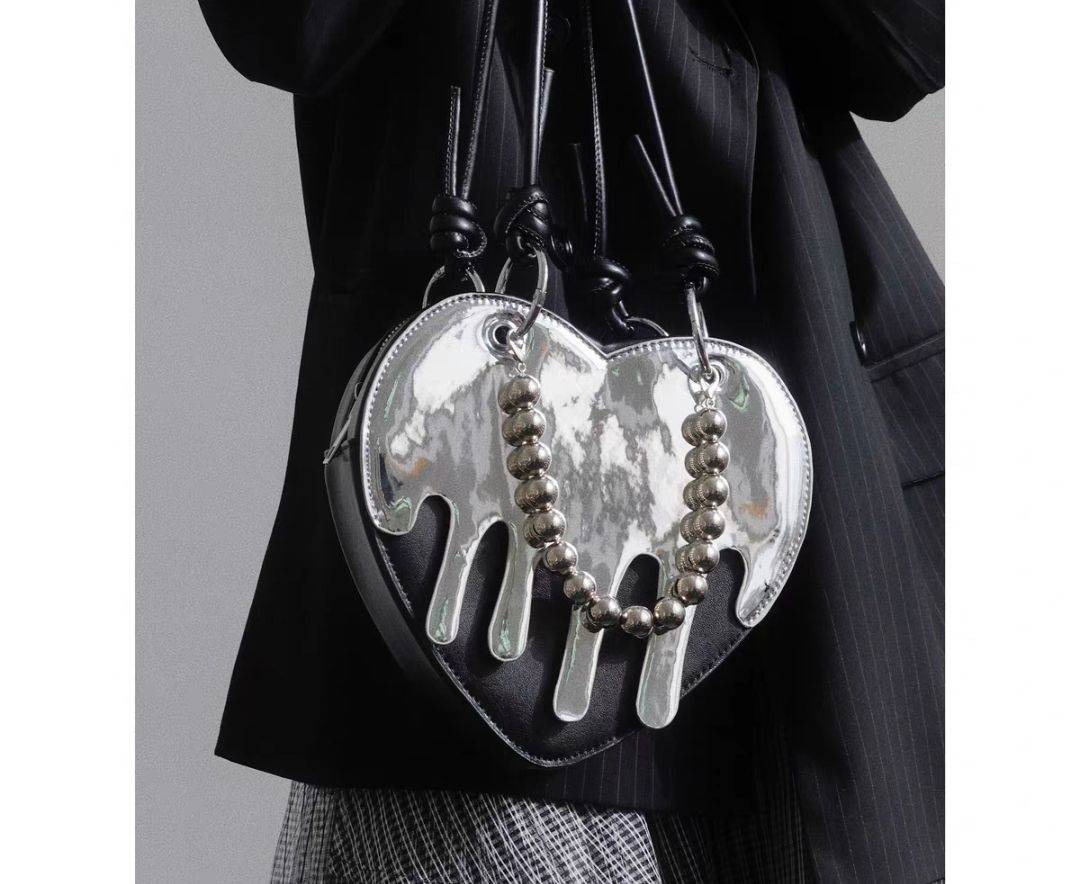 小众原创设计款暗黑y2k千禧辣妹溶解的心链条单肩腋下包