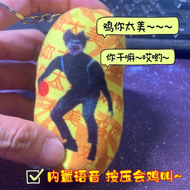 抖音发声鸡你太美坤坤挂件按压会鸡叫语音毛绒公仔西瓜条钥匙扣