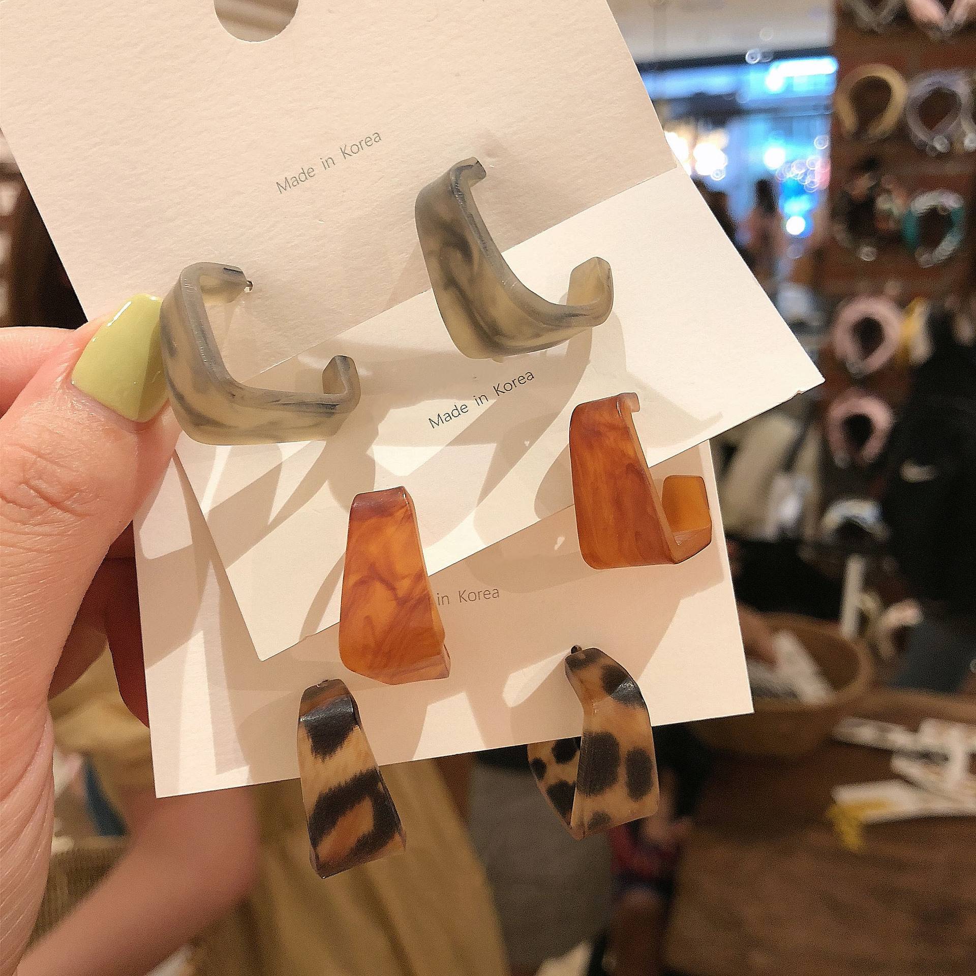 韩国东大门豹纹琥珀几何方形圆形耳环女耳钉气质简约小巧个性百搭