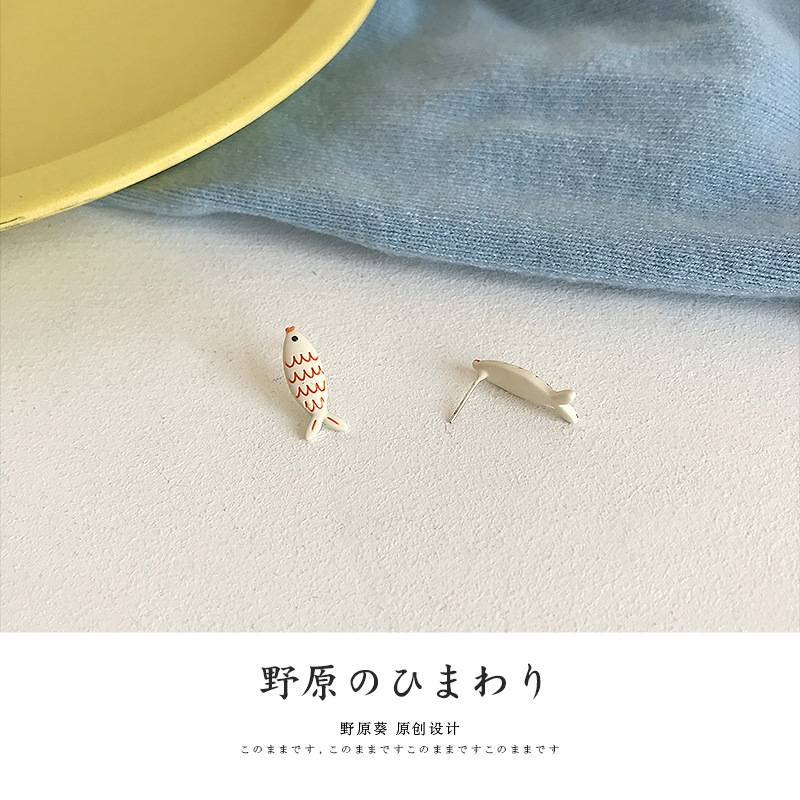 原创设计可爱少女心日系手绘奶白色小鱼耳钉耳饰女