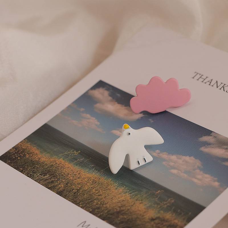 s925银针 磨砂飞鸟与云不对称耳钉甜美云朵鸽子ins小清新耳饰