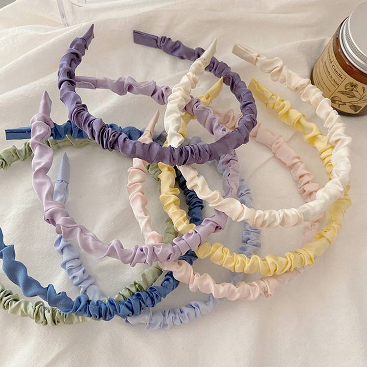 奶油色系甜美绸缎褶皱发箍可爱百搭韩国彩色简约头箍网红洗脸发饰