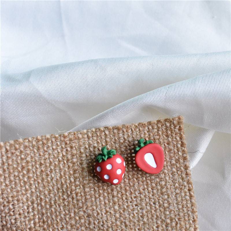 S925银针不对称水果耳环女韩国可爱小草莓山竹软妹滴油耳钉