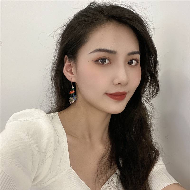 纯手工制作减龄水晶花朵樱桃水果耳环简约韩国新款2020耳饰长款