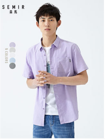 森马牛津纺衬衫男短袖日系2020夏季蓝色衬衣男士商务潮流白寸衫潮