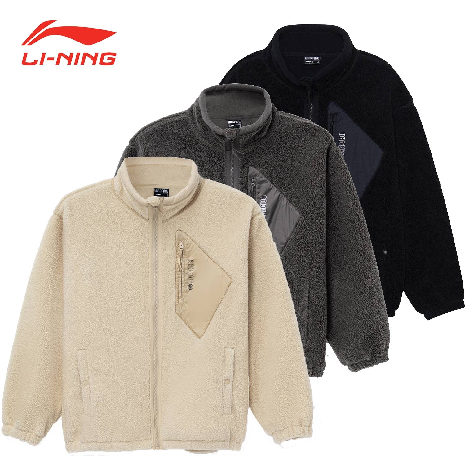 李宁摇粒绒外套男女款冬季新款BAD FIVE反伍系列宽松保暖运动上衣
