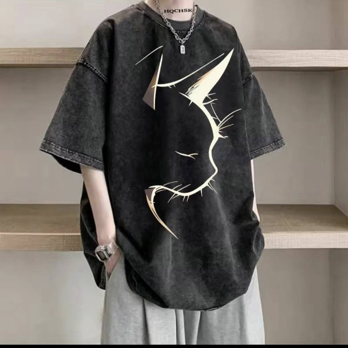 大码300斤纯棉短袖t恤男款夏季美式潮牌百搭小众半袖水洗做旧黑色
