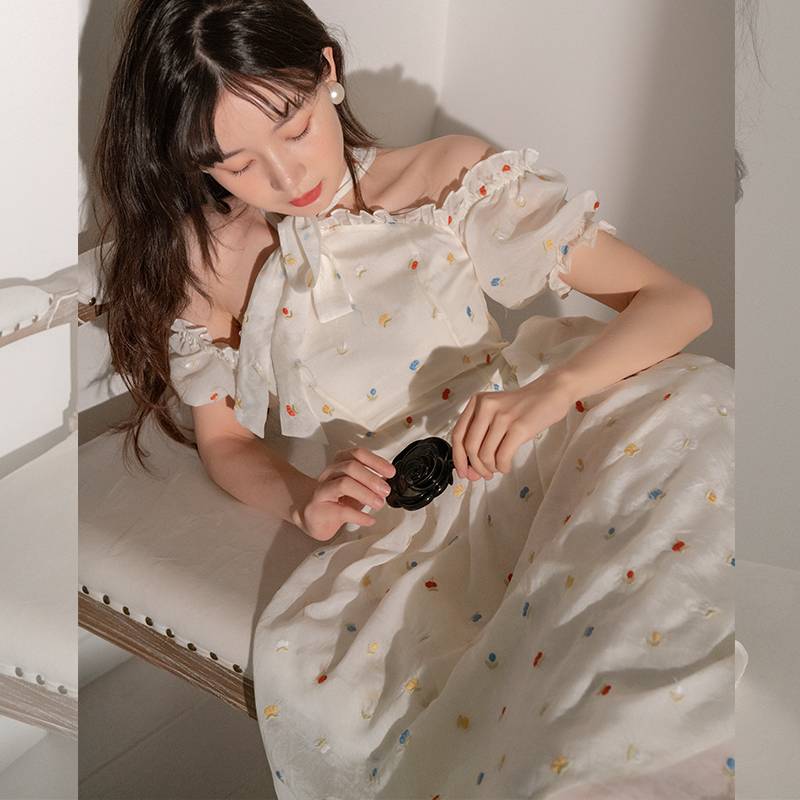 桔梗法式连衣裙子仙女森系超仙白色长裙茶歇初恋夏季2022年新款女