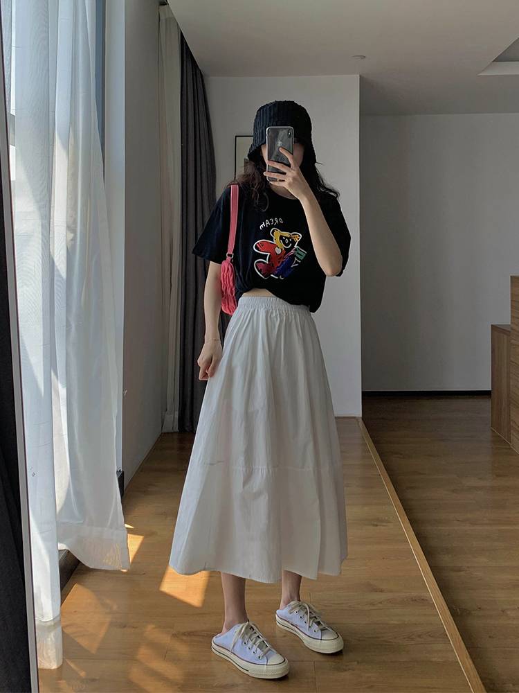 A7seven白色半身裙女夏中长款高腰显瘦拼接休闲A字遮胯花苞伞裙子