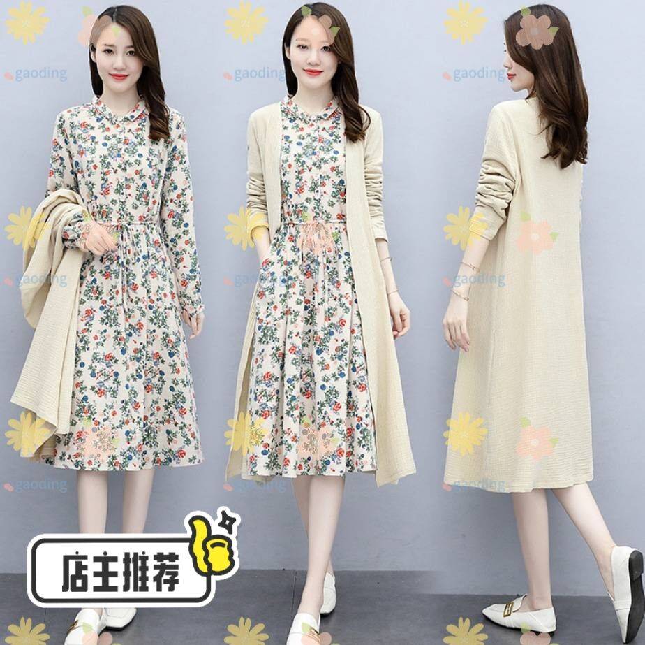 碎花棉麻连衣裙女秋装2020新款薄款长裙两件套裙子