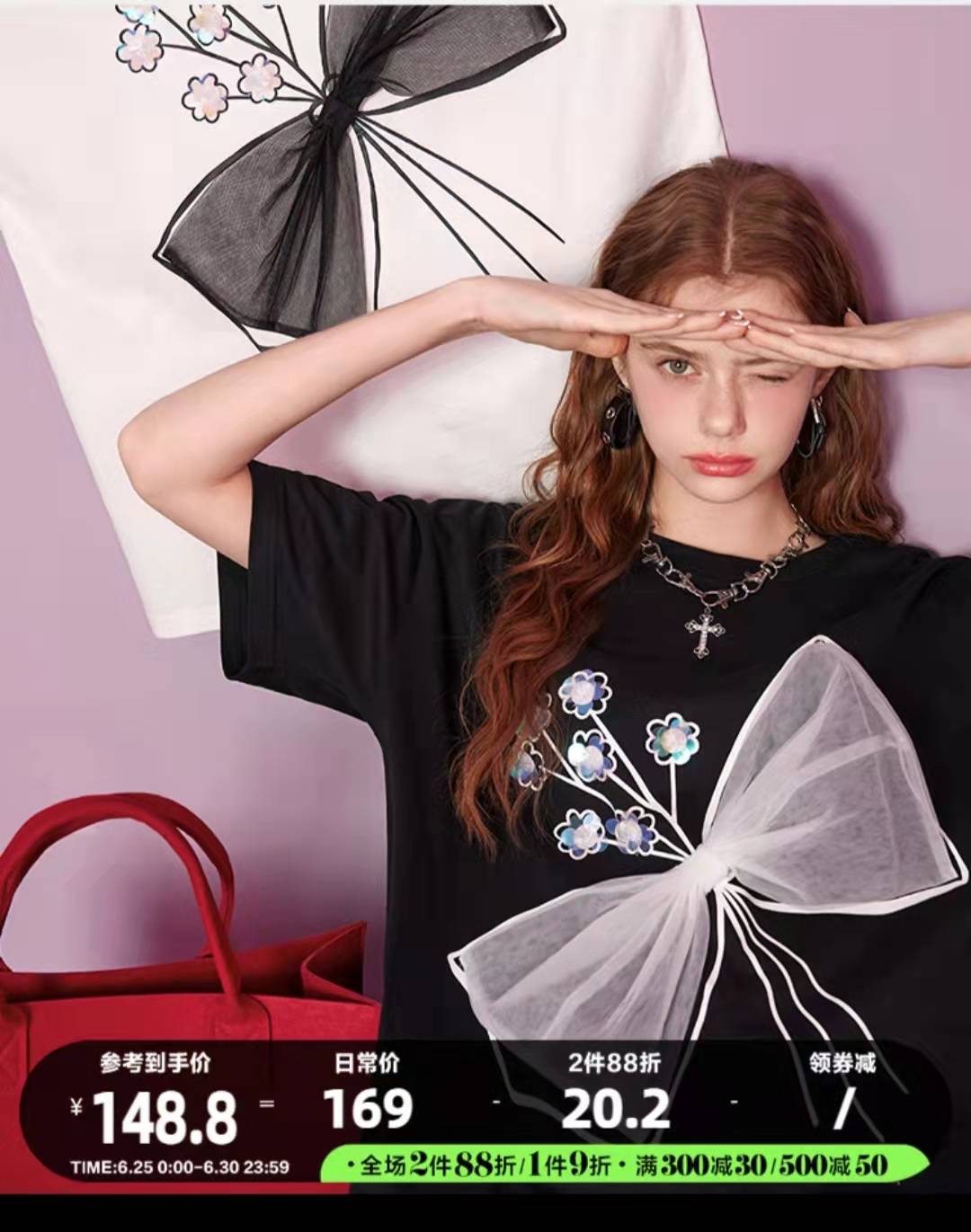 全国包邮短袖女2022年新款夏季ins潮甜美立体花朵印花宽松纯棉