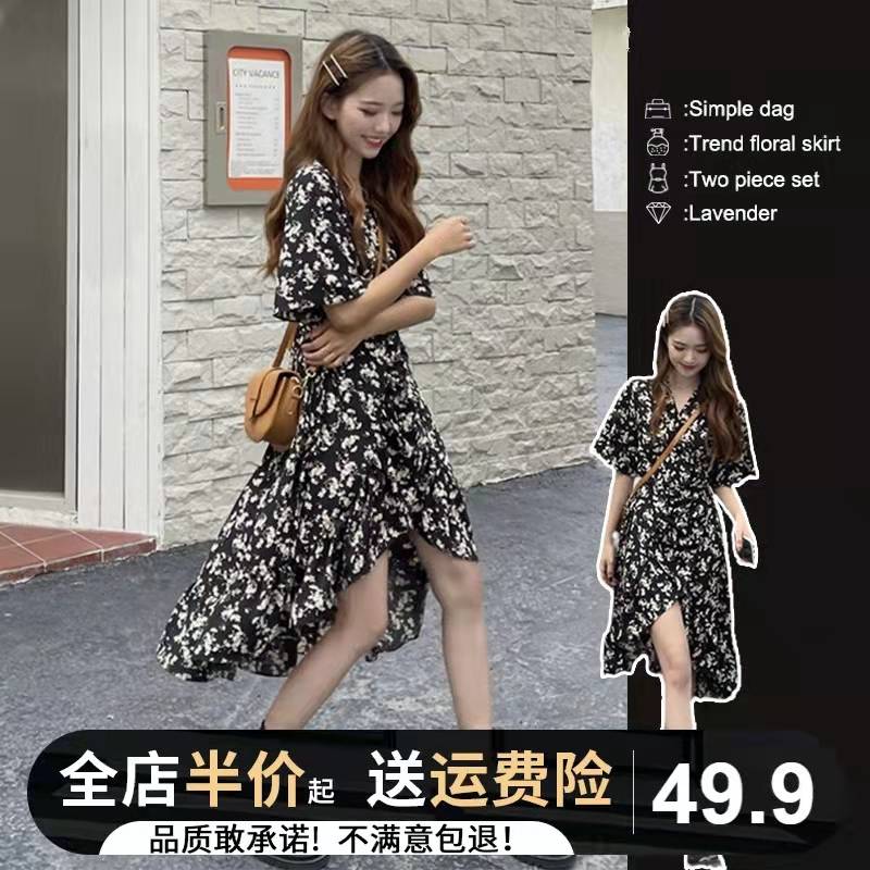 全国包邮2022年新款夏季雪纺碎花连衣裙高级感女装法式