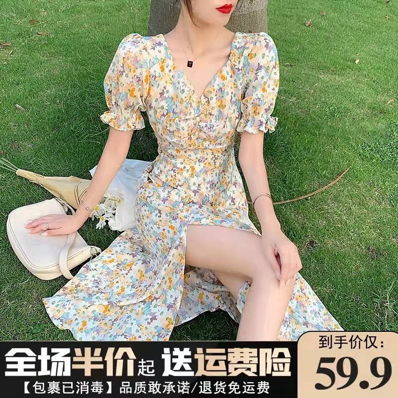 全国包邮2022年新款女装夏季泡泡袖法式碎花连衣裙子