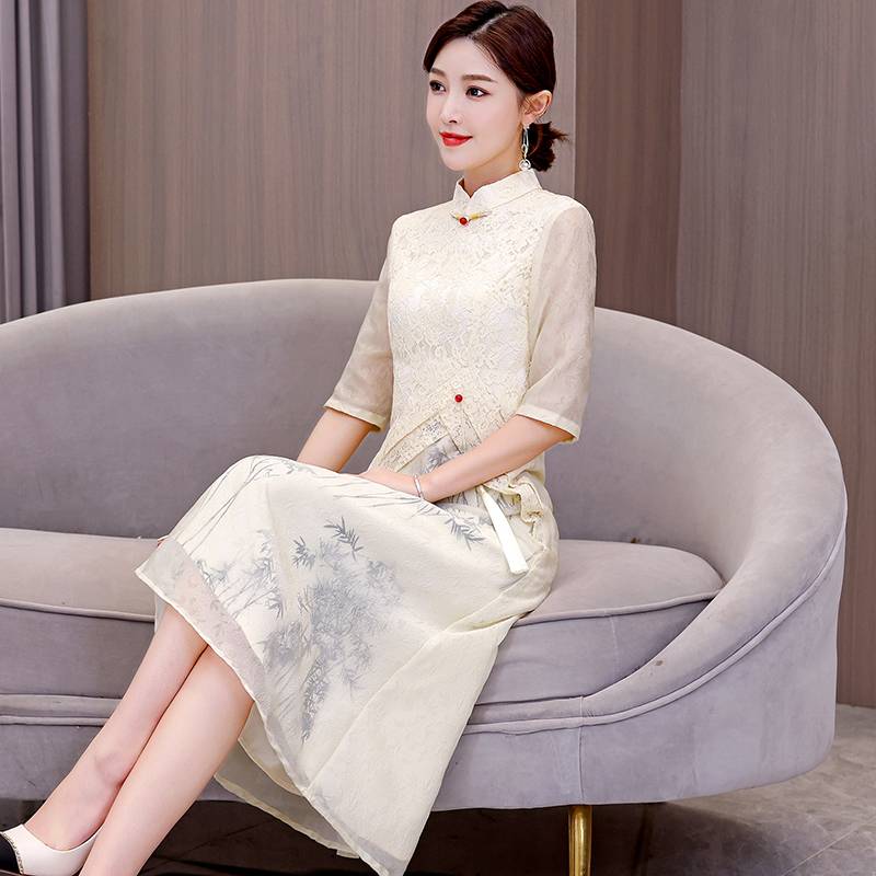 蕾丝旗袍2023年新款秋冬年轻款少女改良气质新中式拼接连衣裙春季
