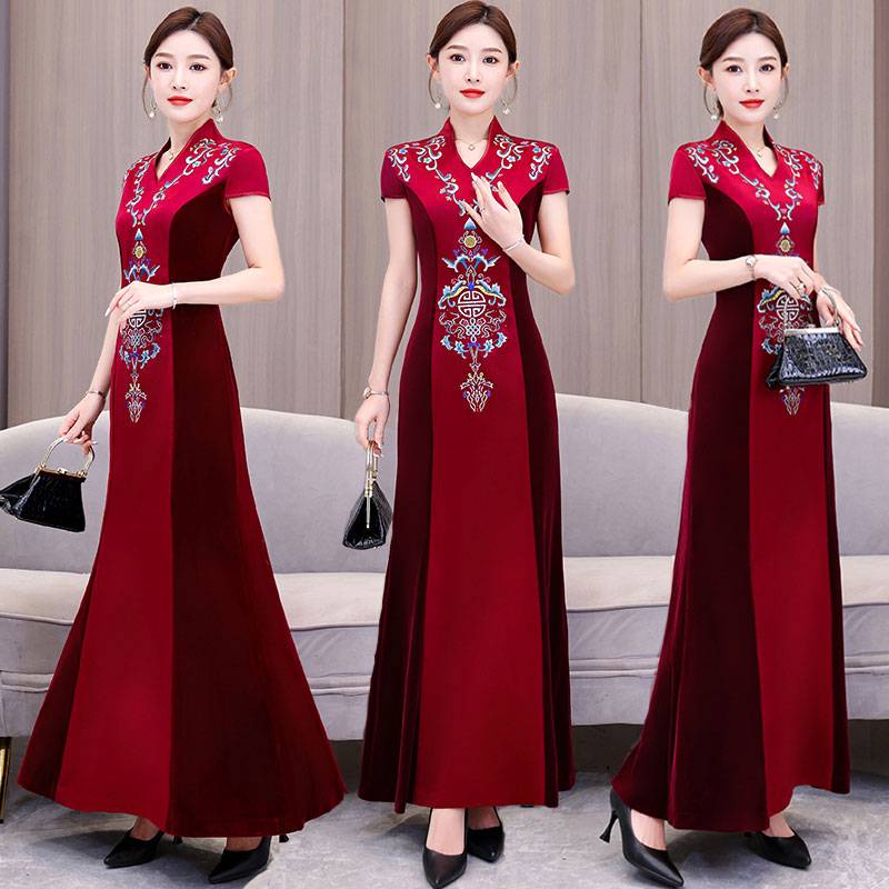 婚宴礼服女平时可穿丝绒鱼尾裙结婚高贵妈妈敬酒服法式轻礼服长裙