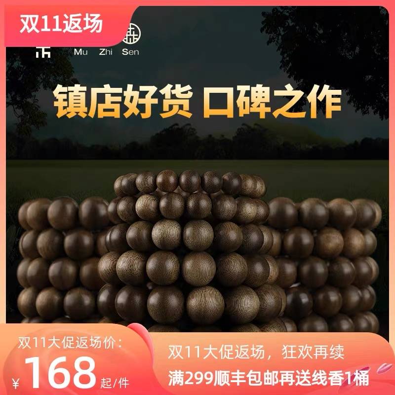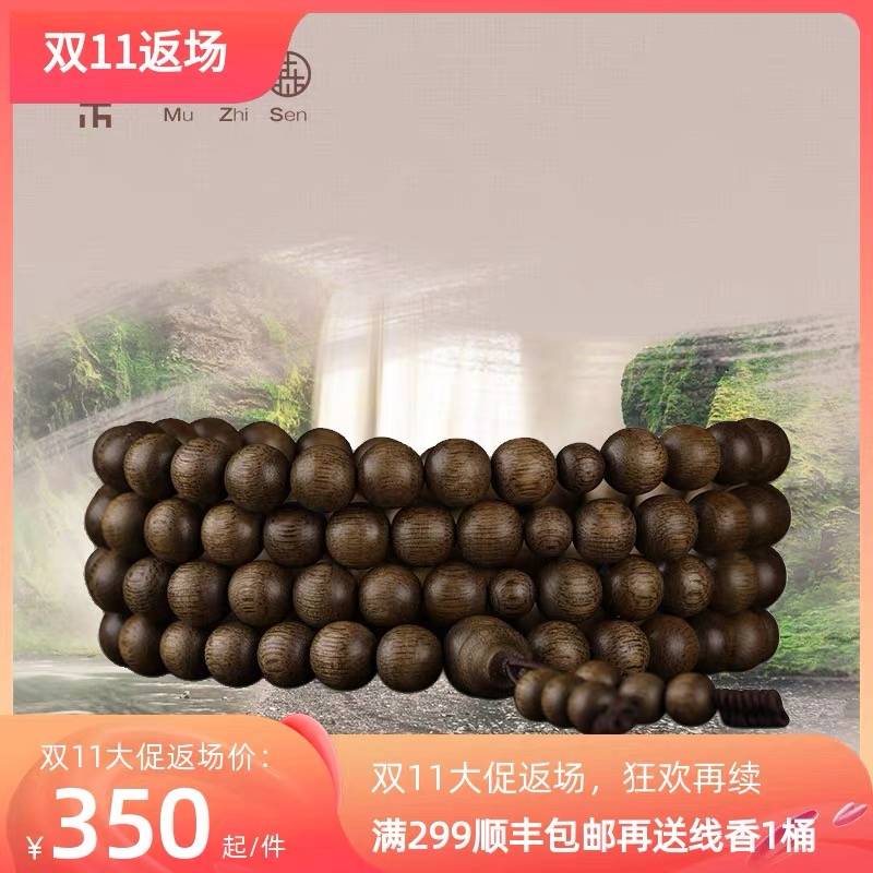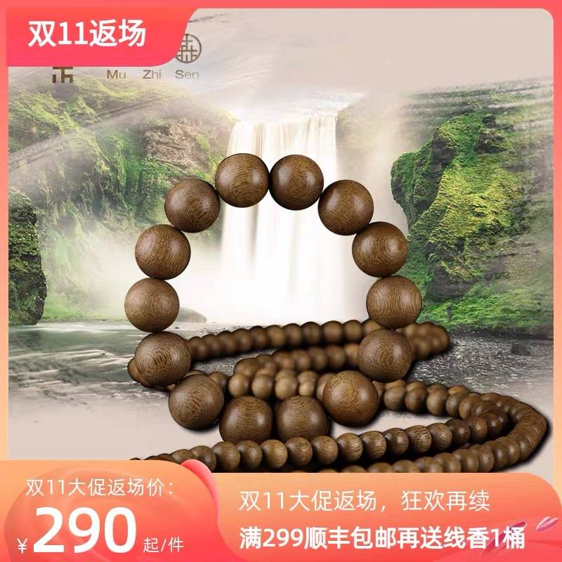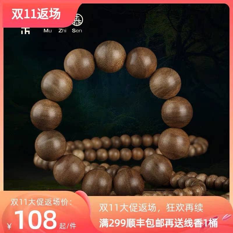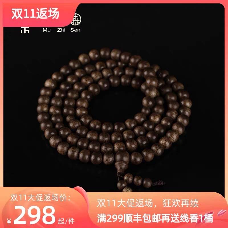 鱼舍串儿加里曼丹沉香108颗佛珠手串木质佛珠手链女文艺木珠男保真