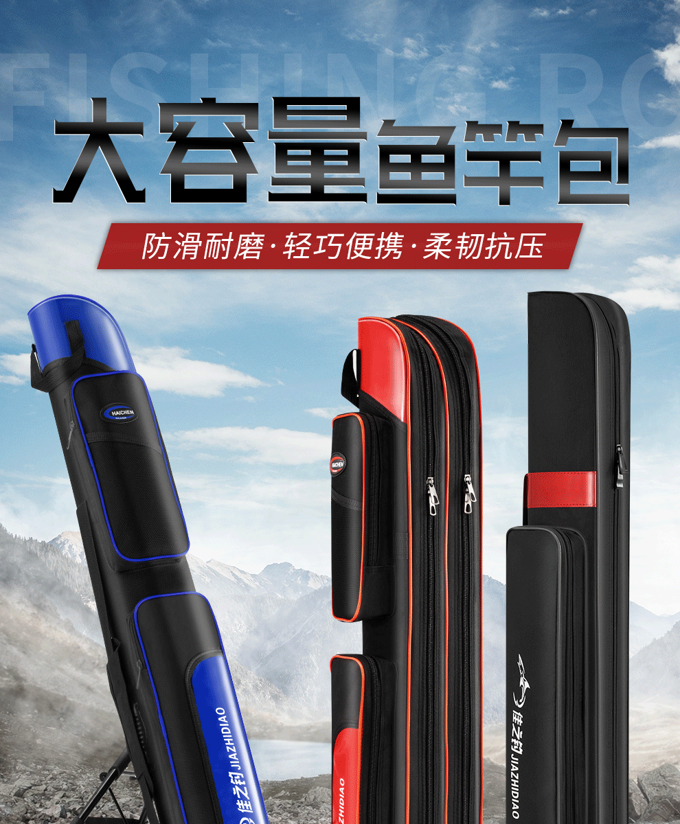 佳之钓新款鱼竿包渔具包双层防水硬壳鱼杆