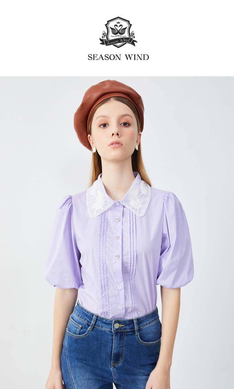 季候风(SEASONWIND)刺绣衬衫女学生五分袖设计感夏季新款女装