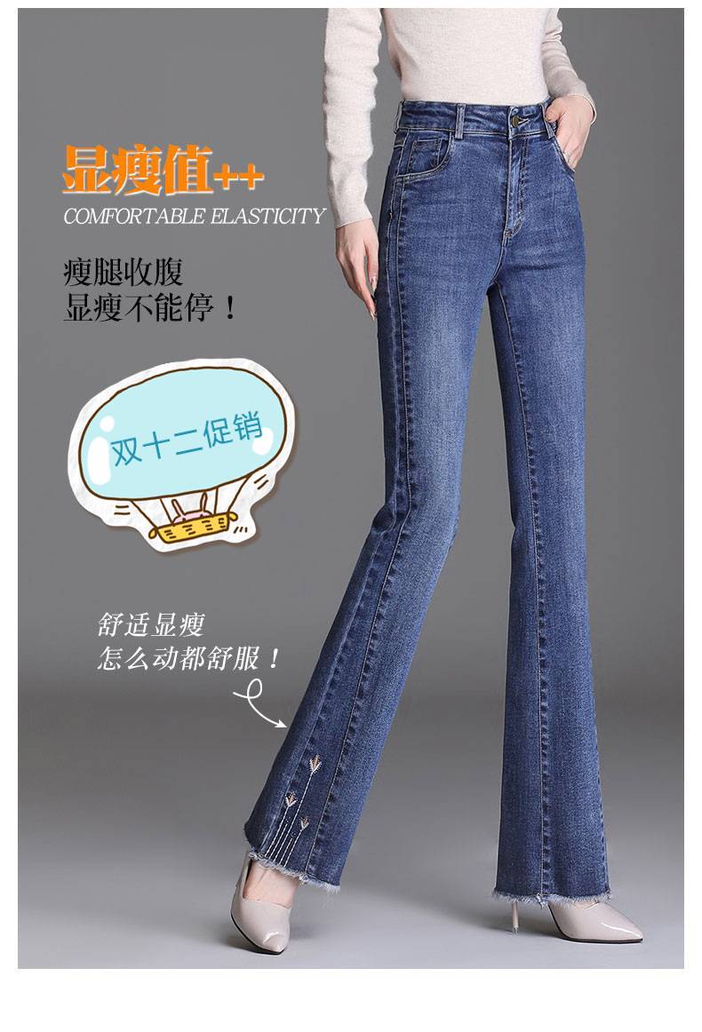 魅力棠牛仔微喇裤女春秋季新款高腰宽松裤子气质女裤