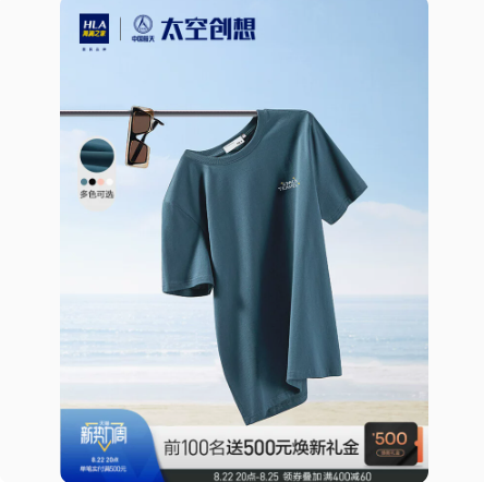 HLA/海澜之家简约纯色短袖T恤2021夏季新品字母点缀新疆棉短T情侣