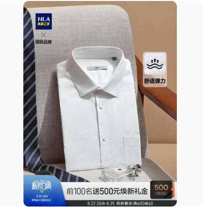HLA/海澜之家舒微弹商务正装白色长袖衬衫修身长衬衣男士