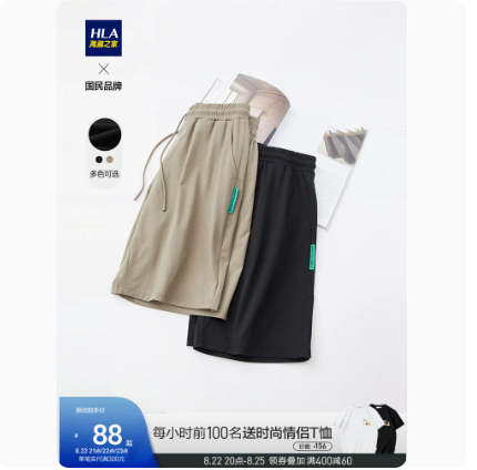 HLA/海澜之家运动抽绳休闲中裤夏季宽松薄冰丝短裤子男生