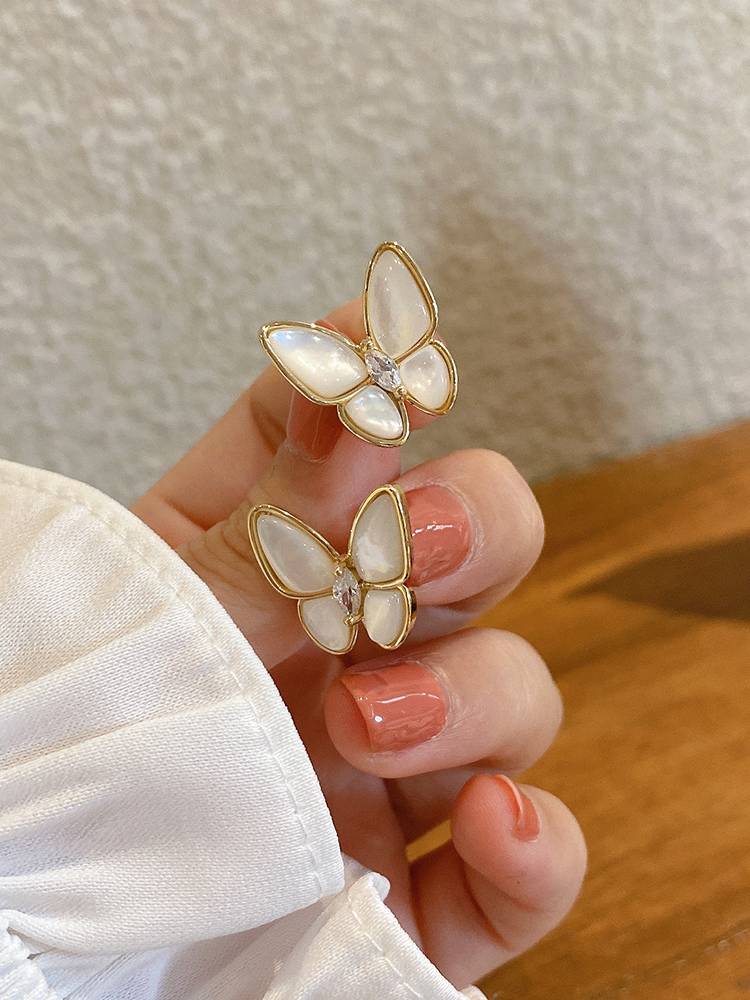 贝壳蝴蝶耳钉2021年新款潮高级感耳环女夏韩国气质网红东大门耳饰