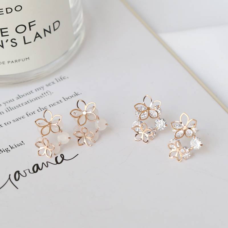 韩国新款 优雅蛋白锆精致花朵闪锆石纯银针耳钉耳饰品气质女简约