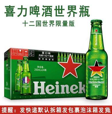 特价促销喜力世界瓶限量版 喜力啤酒250ml24瓶整箱HEINEKEN