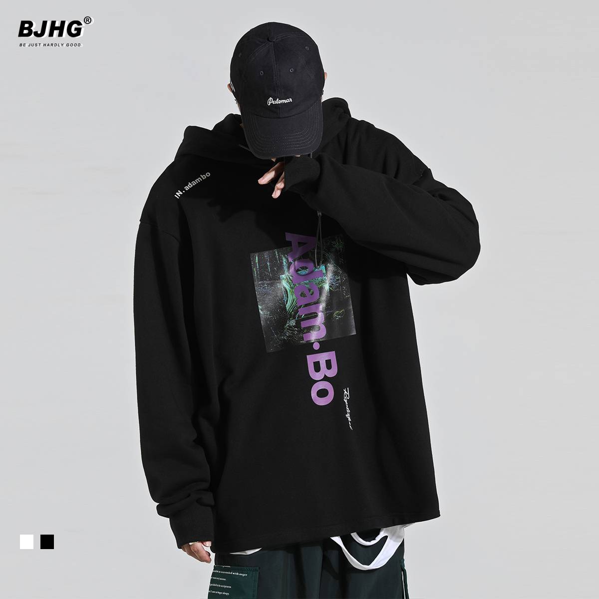 JHG 春加绒加厚连帽卫衣男潮流欧美街头宽松ULZZANG帽衫情侣外套