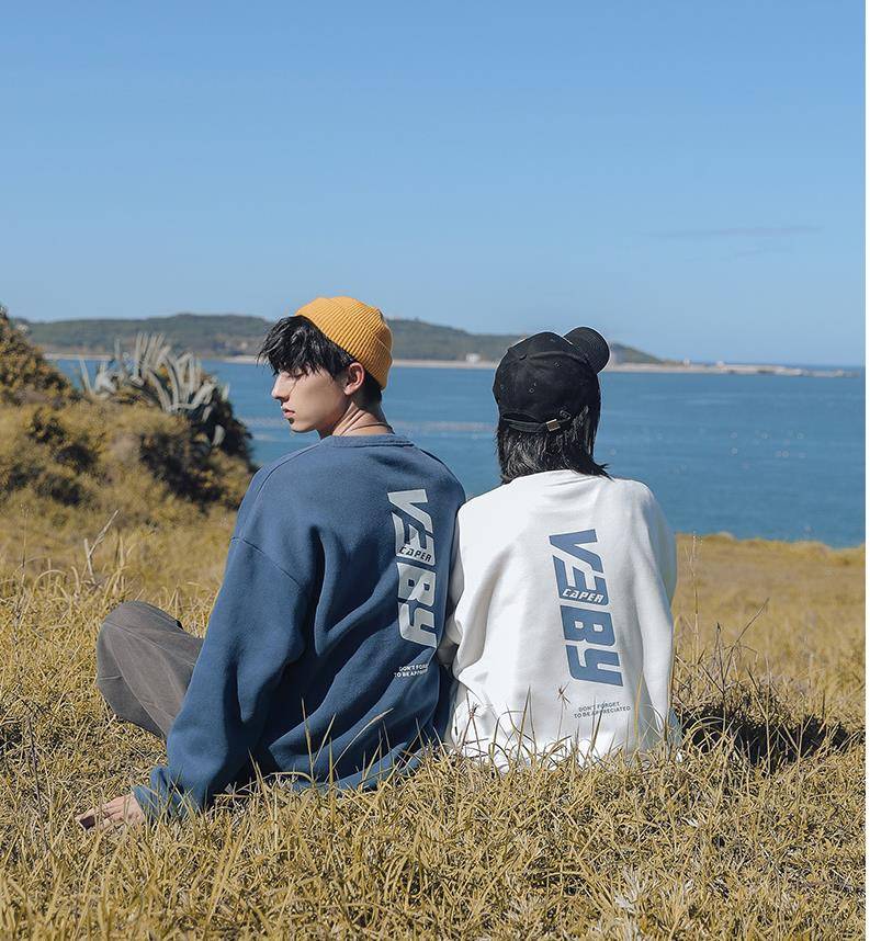 2021新款春秋日系宽松纯色卫衣男潮牌圆领无帽套