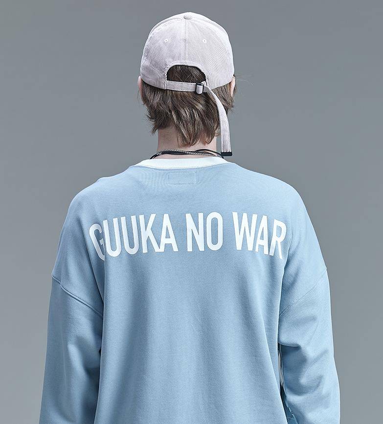 GUUKA渐变色圆领卫衣男潮牌 青少年嘻哈运动拼接腰果花卫衣男宽松