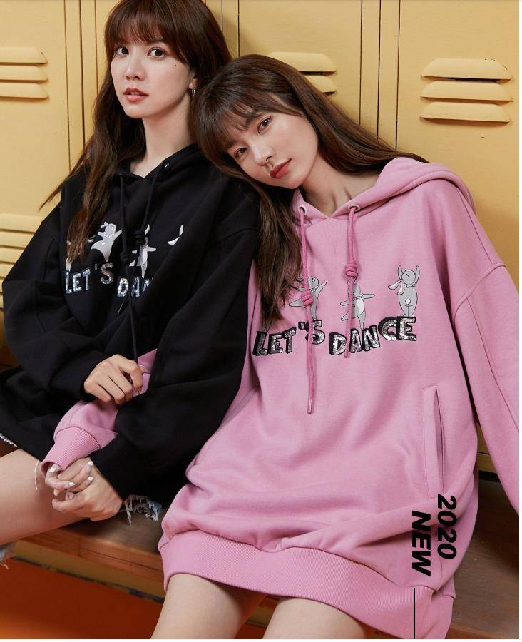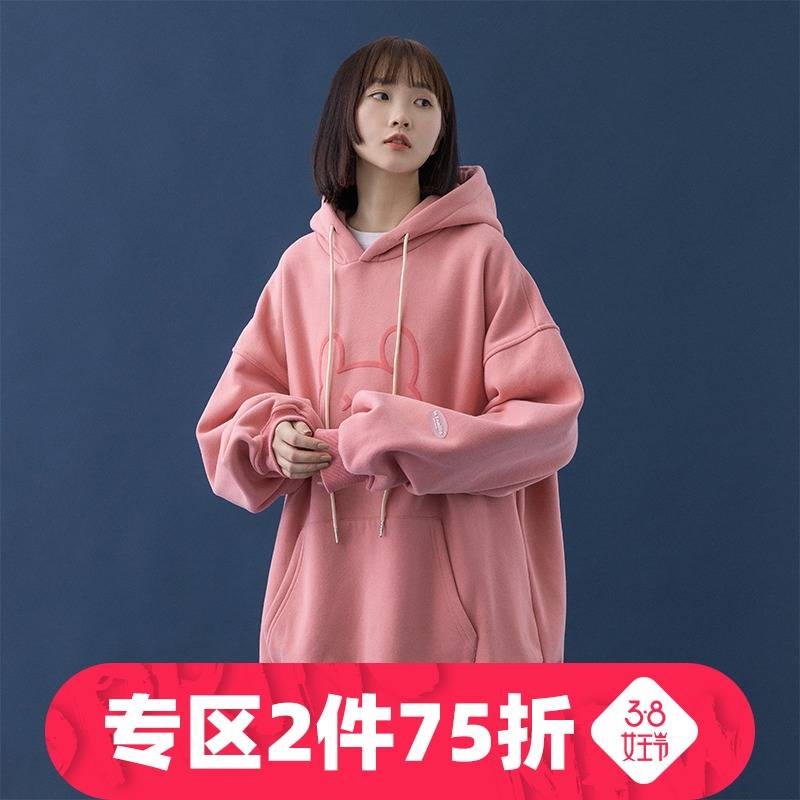 RELIFE连帽卫衣女2021春季新款宽松港味兔子印花外套潮J