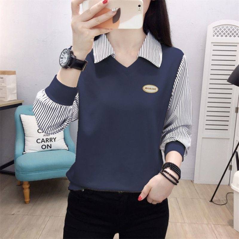 长袖T恤女2024新款秋季女宽松POLO领春秋高级百搭T恤