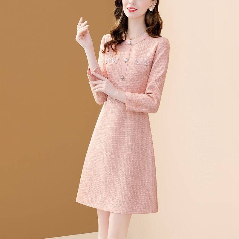 高端轻奢粗花呢连衣裙女2024秋冬新款名媛气质钉珠减龄显瘦中长裙