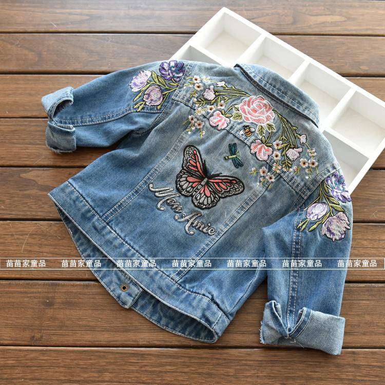 外贸女童刺绣花朵黑蝴蝶牛仔服外套 欧美童装 春秋新款 儿童开衫