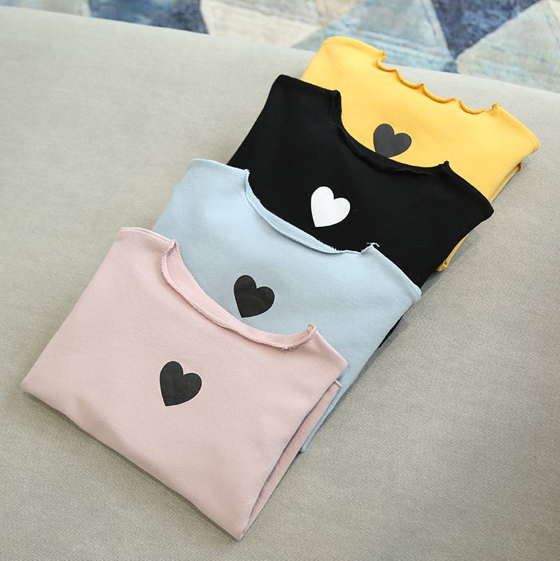 女童爱心喇叭袖花边打底衫儿童休闲T恤 外贸童装2018韩版新款童装