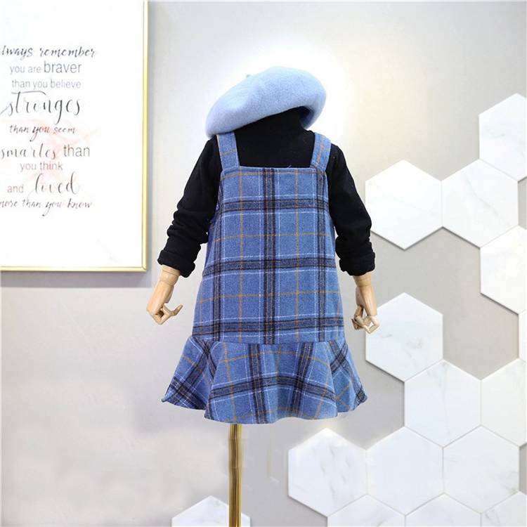 女童冬装2018新款韩版字母半高领加绒打底衫+格子吊带裙两件套装