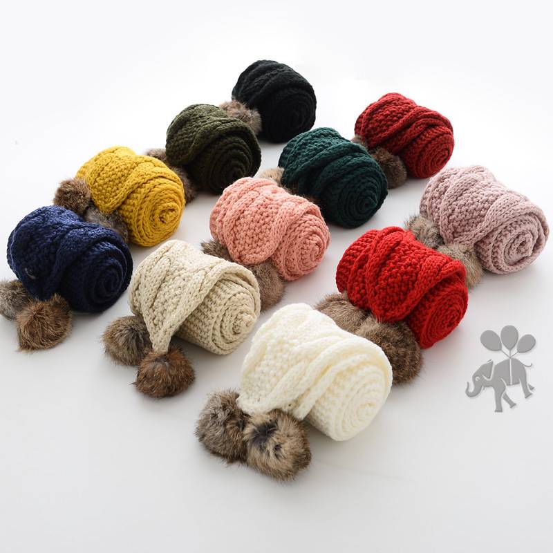 2018冬季新款韩版儿童围巾男女宝宝毛线针织毛毛球加厚保暖围脖潮