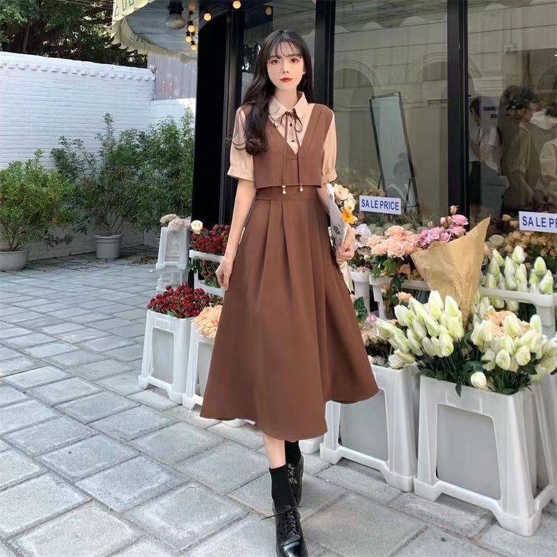 学院风韩系假两件连衣裙