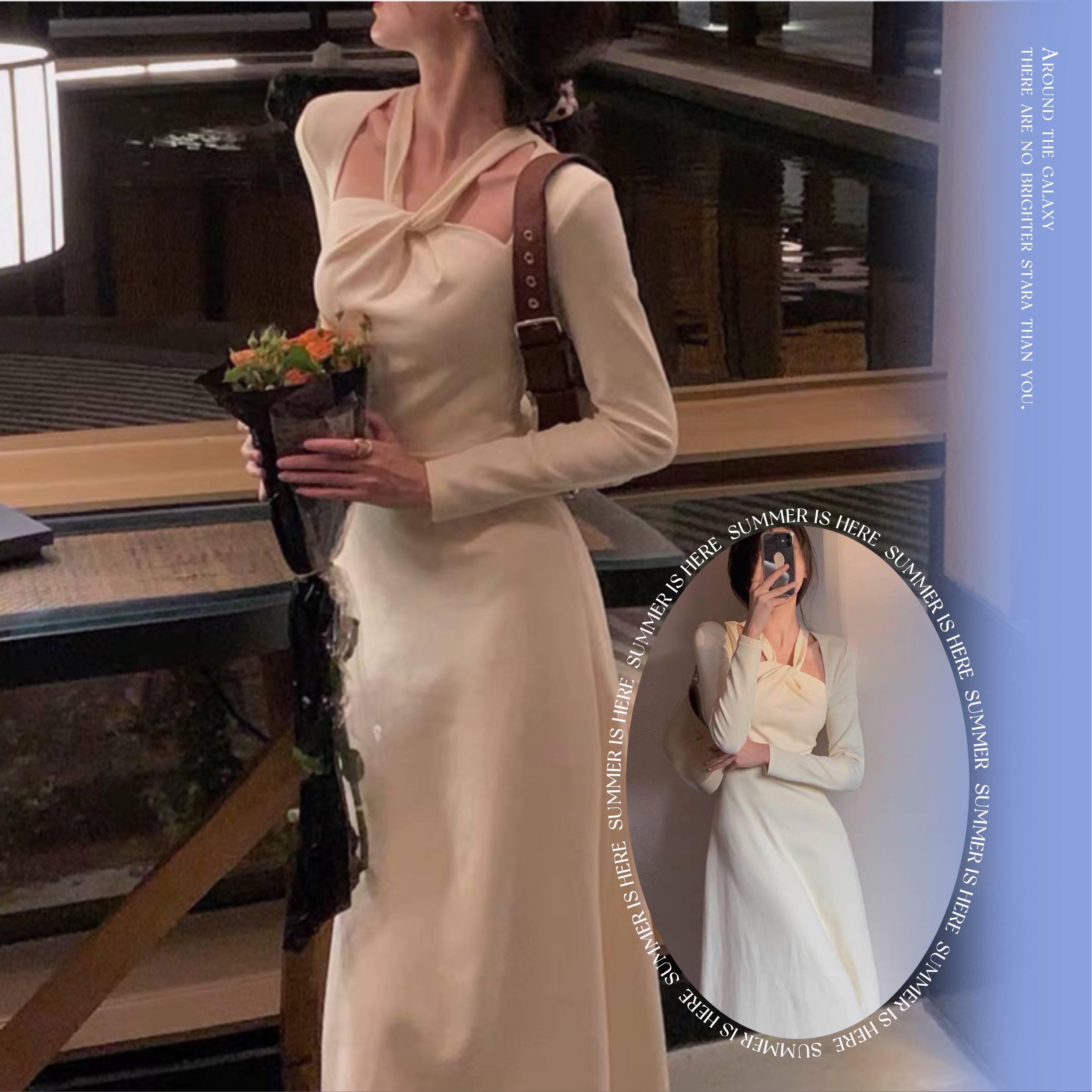 法式复古长袖连衣裙新款早秋韩国黑裙宽松女装