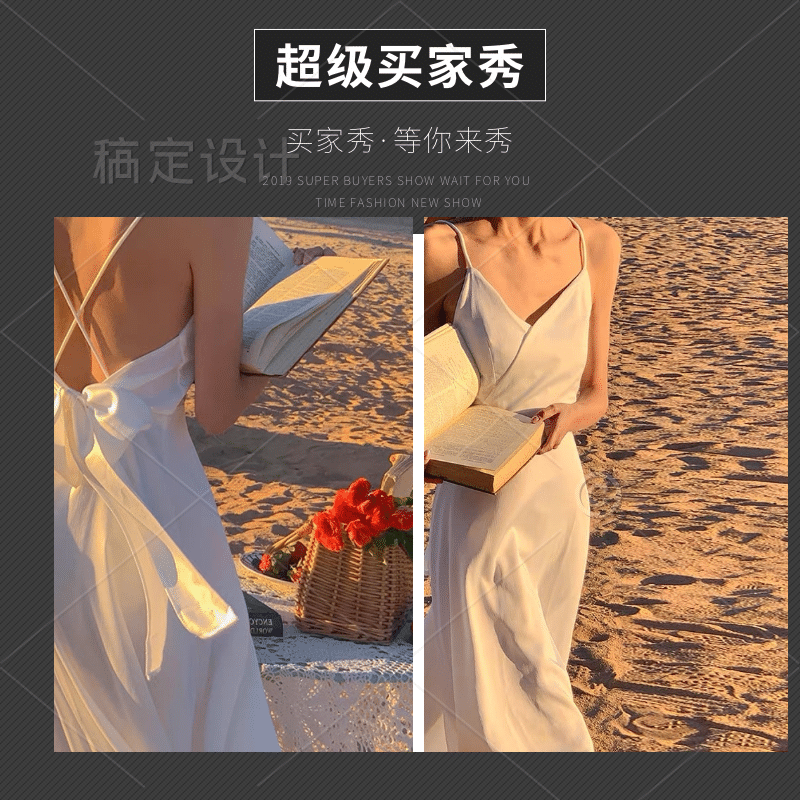 格子吊带裙2019新款chic连衣裙女夏季露肩收腰显瘦裙子