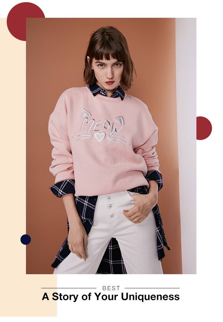 ONLY2018秋季新款宽松猫咪字母加绒卫衣女
